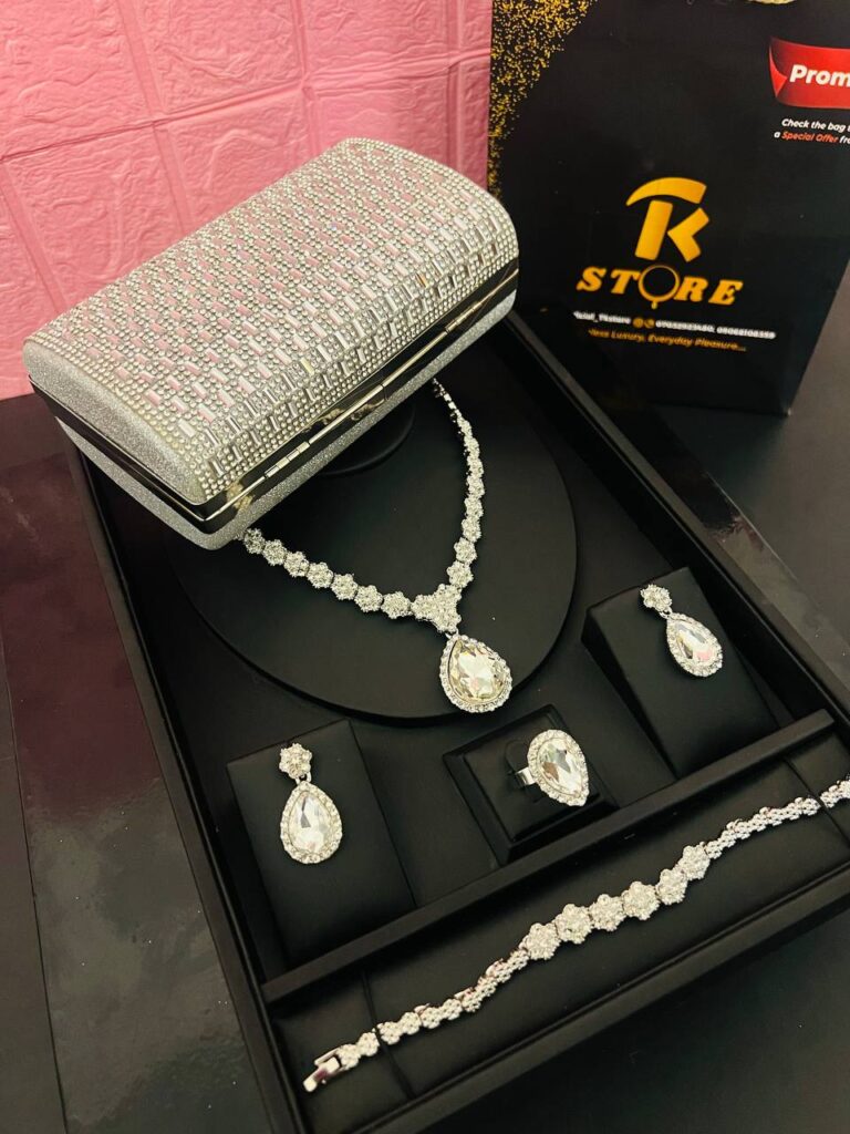 Wearing this Luxury Jewelry & Clutch Set instantly elevates your elegance — giving you that radiant, confident, and sophisticated look that turns heads anywhere you go.